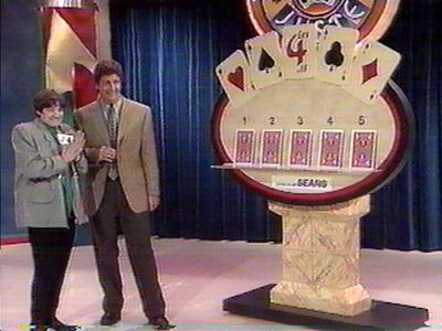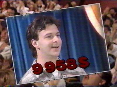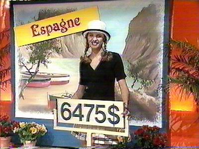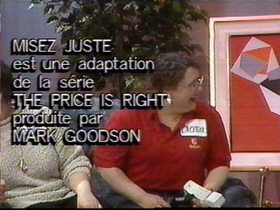 Misez Juste was the French-Canadian version of Price. This show lasted for only one sesaon, 94 – 95.Unlike other versions, this version showed some of the past show’s winners. And yes, $9,958 was considered a big win!The host Alain Léveillé, used to talk to the announcer, Fabien Major, before he called the contestants down.One of the first 4 contestant coming down.Alain came on down to the stage also…Délima can win that awesome clothing… Showed by model Josée.…or that wonderful trip to Cuba!Aargh! Even if Joker is called “Les 4 as” (4 Aces), it’s still scary! (Note the same shape, but bland colors of the prop.)Most of the small prizes on Misez Juste are provided by the Sears catalog. This is a cd rack, shown by Eve, the other model.Délima only got to discard 2 cards… I hope she only has aces up there!Looks like she’s about to ram into the prop!Bummer, the Joker was not discarded!A closer view of the one-bid row as Christine wins her way on stage.Note that the giant price tag is pretty similar to the US version, but they are facing the other way.The big do…er… curtains are opening to reveal patio furniture. Note that the logo is going up!That helmet and those gloves are only one of the other small items she can win, playing…Méli-Mélo! Just like Switcheroo, but the top prize she is playing for is only $1900. The colors are different, but the set look similar.After her first try, she only got one right…No luck! She took her second chance and only won a $90 walkman.Romain is going to play Supermaché, which is similar to the US Grocery Game.The brand is not hidden, even if the company didn’t pay for the plug. Today’s game play was sponsored by l’Inter-Marché, a grocery store chain.You had to buy items for a total price between $9 and $10. Romain wins with a total of $9.05 (Note that NON means you lose and OUI means you win!)Contestants not appearing on stage will receive…Coffee? Not much of a budget here!Similar wheel, no green sections, no $1,000 if you get $1. Cheap, cheap, cheap!Ah… Good times! (He got over.)Can you guess what game this contestant is playing? Yeah! Lucky 7! Actually, it’s called “For One Dollar” and it’s played with 7 one dollar coins. (Loonies)Just to make sure nobody cheated with the electronic display, here’s the proof that she won, with only $1 left!Hmm… Furniture… Again!This time, Chantal will play Shell Game or The Rare Pearl! (French expression to describe something that is hard to find.)Higher or lower? This grill was lower than $85. She won one chance!Is the pearl under that clamshell?No, not under that one either! (Note that all the small prizes are given by Sears)The ping-pong ball.. er.. pearl was under the second shell… too bad!Danger Price, “Risque et Péril”. Not too much difference between this and its US counterpart.Danger Price is 630$. Oh, $630! Sorry!Hmm… I’ve found one difference! The reveal buttons are much more smaller!Contestants not appearing on stage will receive…After the second SCSD and the fee plugs, both “Jeu des Grand Prix (Showcase)” contestants meet.Contestant’s Row podiums are used for the Showcases.Since the show had a limited budget, most of the showcases consisted of furniture and a bunch of small prize items.This show did not give away cars, they gave away car rentals!Say Fromage! What a nice Nikon camera!Top winner passed, runner up’s bid? $7,500!First prize of 2nd showcases. What’s that? Another camera, what a nice variety of prizes!And luggage. What could possibly be the next prize…Fooled ya! It’s not a trip, but a complete set of Whirlpool appliances!They had to have a trip in there somewhere! How about a nice train ride from Montreal to Halifax!Yikes! $10,500 for that? It’s a train RIDE not a train!See, you’ve gone over! It says “Too Much” on the readout…No mention of Fremantle, Pearson or All-American during the closing credits, but then again, this was 94!