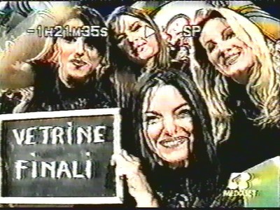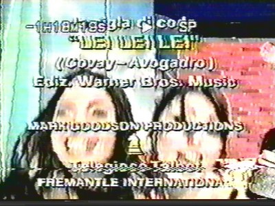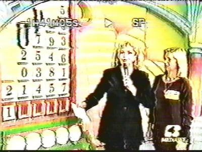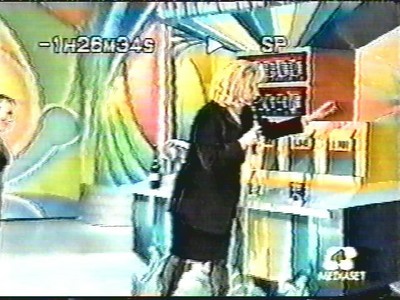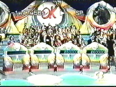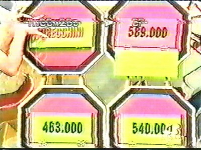The audience is revved up for OK Il Prezzo e GiustoMaking her entrance is Iva ZanicchiThe first pricing game offers a dehumidifier, cordless phone and a microwaveShe’s going to walk the Via del OroIs the missing digit in the phone’s price a 3, 5 or 4?Finally the microwave. Is it 1.554.000 lira, 1.559.000 lira or 1.555.000 lira? She lost, it was 1.559.000Colorful contestants rowWhy is Iva holding her head? This contestant tried to lean his free X against the board, then tried to lay it down on the base of the game before finally getting it rightIs the cheese knife 712.000 or 618.000?A winner is that guy! That would never work over here. They never put the X in the bottomCan the next contestant win 2 giant pieces of art? Nope, the model is wearing some jewelryIn this version of Cover Up, the model moves the digits downIva is amazed that she got 4 of 5 right on her first tryAnd is even more shocked when she got all 5 right in only 2 tries!95 is the number to beat. I don’t know if there were any bonuses for getting 100Ooh! So close!The models do a dance as we go to commercial“We’ll be back in a little bit”Coming around on the turntable is the next item up for bids, just like all IUFBs, a leather bagHome base…just in front of the showcase podiumsThe Danger Price today is 589.000Ah! He blew it on the last pickIva is having a difficult time getting Urbano to make a bid on some hair care appliancesUrbano wins! The audience loves him and chant his name Ur-ban-o! Ur-ban-o!Urbano can win these back packs, binoculars and a European tripNo translation needed hereUrbano had a total of 30.000 on white wine, candies, lotion, Gatorade and hot chocolate. The total of the first 3 products was 32.090 and he loses. Iva has to lift the prices manuallyThe models do a very sexy dance as the doors open on a pair of prizesIn their version of Barker’s Bargain Bar which is the bigger bargain? A tapestry at 730.000 or clothing at 660.000?He picked the tapestry and wins both prizes!Just like Bob, Iva helps Urbano spin the big wheelTime for the final round!Showcase #1 contains a tea set, sofa and TVThe Golden Road lady passed and is bidding on a mini CD stereo, video camera and trip to AfricaShe bid 6.800.000 and he bid 6.100.000She went over by 181.000 and he wins with a difference of 1.846.000The end credit music is “Lei Lei Lei”…a different version of “Chain Chain Chain”. You can see Mark Goodson’s name in the creditsOur winner celebrates as you learn how to apply for tickets to see OK in person
