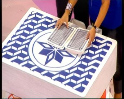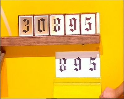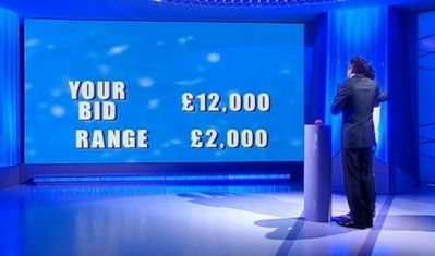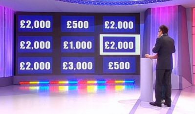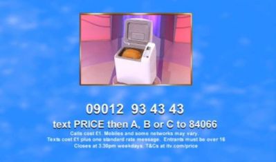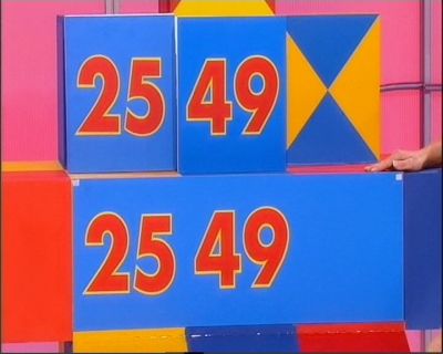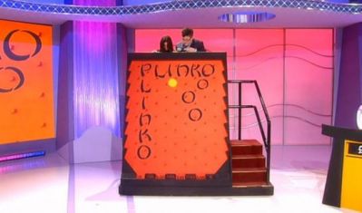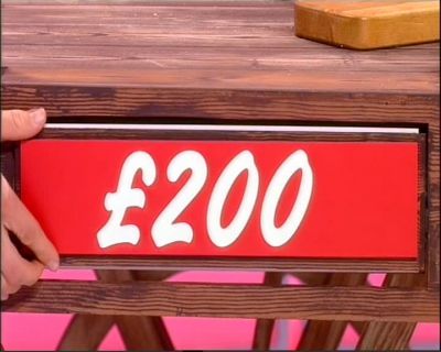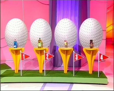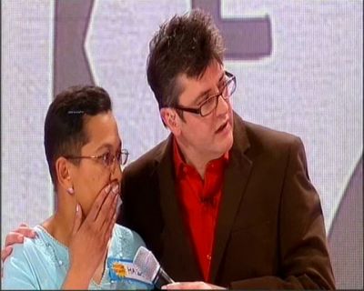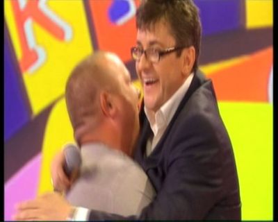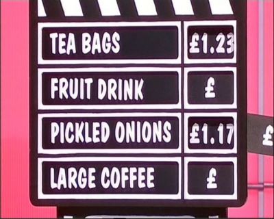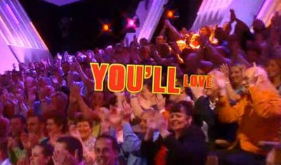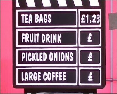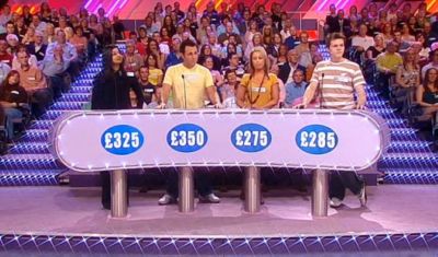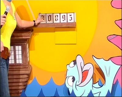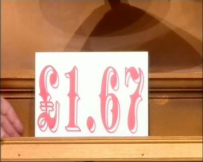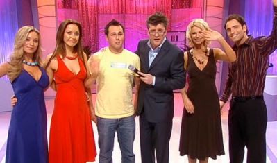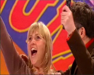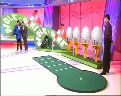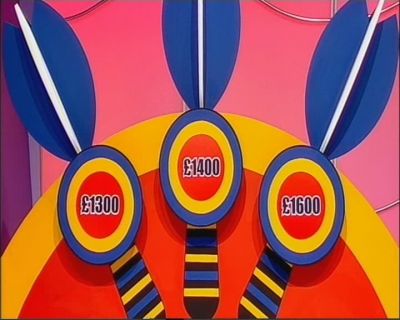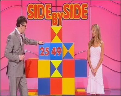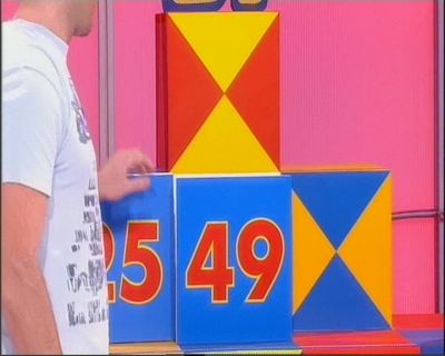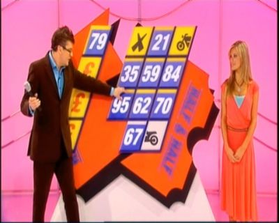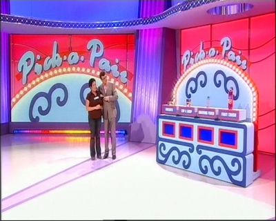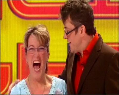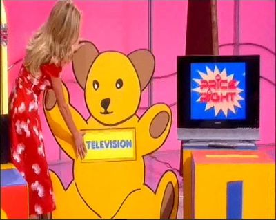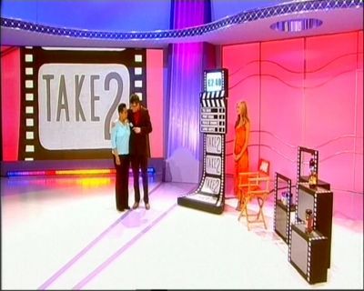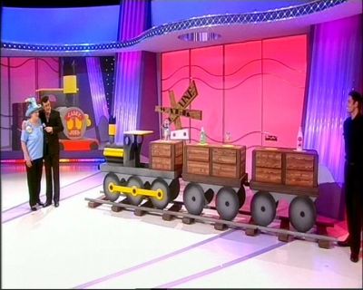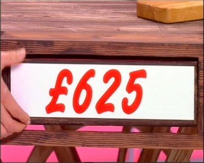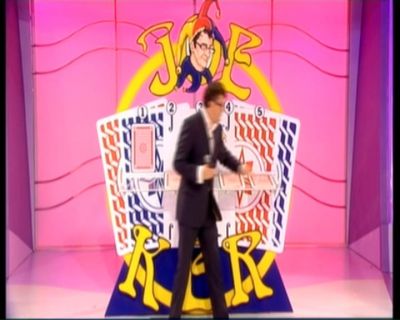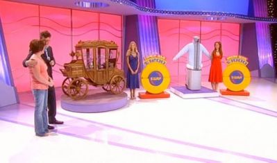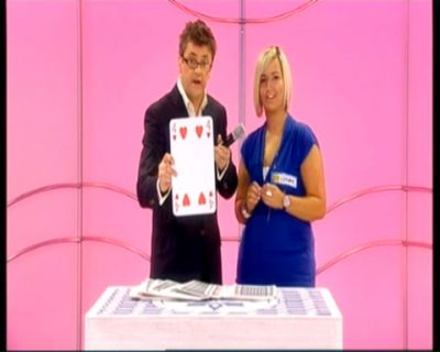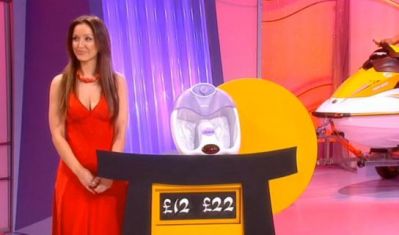 TPiR is back in the UK with a club-like atmosphere and themeAs announcer Peter Dickson reads the opening spiel, the words pop up……and bounce on the screen. This screen will say “You’ll Love It”The Fun……Starts Here!I can’t what?Ah! Resistance is futile. After this “slide” the show logo comes on-screenA large Come On Down sign hangs in the rafters as a thrown back to the Crowther editionOur first 4 lucky punters are in contestant’s rowWe can’t have a show without Joe! It’s comedian Joe PasqualeThe first IUFB is some jewelry. Oddly, Joe hints that it costs more than £200The bids are locked inThe young lad won those and stands beside Joe. Behind them is a massive video screenHe’s playing 1 Right Price for a jukeboxIn this version, he must choose between 3 prices£1,475, in the middle, was right! The first-ever winnerThis model spitfire is next for bids. Joe makes a joke about that “talking piece”Shaz won and now she could also take home…A SeaDoo worth more than £7,000!Plinko is the gameJoe gives her one free disc and now…play along time! Is the foot spa £12 or £22?Were you right? She wasn’t.Here you see the money amounts along the bottom of the Plinko boardPlinky Chinese music accompanies the discs as they bounce down the board£0! She needs to win some money if she wants a go at the SeaDoo£100! That is the extent of her winnings from 3 Plinko discs. She will risk that “huge” sum of money to try for the SeaDooJoe’s “twin brother Reynard” brings out the Golden Plinko Disc of DesireThe old discs will be removed after the WIN – LOSE card is put in placeOh, it got stuck! Joe kicked the board from behind to get it moving againShe wins!Each episode is accompanied by a text game where home viewers bid on an item (in this case a bread maker). A random selection from the correct guessers wins £1,000The series is sponsored by supermarket chain ASDAOur 3rd pricing game of the day is SwapThe first prize is a bar shaped like a coach2nd is a “man” that dries shirts by blowing warm air from the inside…no need to iron either!She left the prices and won!In this version, she only gets to keep one prizeShe’s excited to have won! She took the bar, by the wayThe 3 players are ready to spin the wheel. Notice how they’re ordered from least to biggest winnerSpinning 100 on the wheel gives that person a chance at winning a new car!As the wheel spins, you can also see it spinning on the giant video screen95 is a great score…but not when it puts you over!The jukebox winner watches as the amounts flash around. This showcase is the same as Bruce’s versionPressing the plunger stops the flashing ’round£2,000. Not bad. That means he can miss the price of this showcase by under £2,000 but he can’t be one penny overHis first prize is a GPSThen some dining room furnitureA trip to IcelandAnd finally a street-legal off-road buggyHis bid is £12,000 and he can’t miss by more than £2,000Oh!He was over and no more prizes for himJoe and the models commiserate with the loser One credit slideMore credits with the models and announcerYe Olde Fremantle Art CardDid I mention the show is sponsored by ASDA?This time, we’re playing for a shower unitTake 2 is the game. Note the cool Hollywood-themed setAgain, I ask you, a little stereotypical, no?Blech! Pickled Onions!Same rules as USPiR. Which 2 products total £2.40?Starting with the tea bags which seem like a good choiceWhoops! The Fruit Drink won’t work!Joe and the lady consider her optionsShe took the pickled onions for the win!Way-hey! Well played ma’amWould you like to win some lovely jewelry?What about this off-road motorcycle instead?The game is Any Number3 digits placed. Avoid the piggy bank because it’s in pounds and pence!Another winner!A motorbike. Hurrah!This time, it’s One Wrong Price for some kitchen appliancesDo we have another winner?Yup! Another perfect show!A moped is up on offerPick A Pair is the game. It’s very closely modeled after the American set-upOnly 4 items though. The biscuits are the first pick at 98p. Can you find the match?Right on the first pick!‘Raynard’ is back as a real-life mountain climberIt’s Cliffhanger with no changes to setup or game-playLet’s play Joe’s Bargain Bar for a rocking horse priced at £425 and a fountain at £351Actual price of the fountain is £451For a bargain of £100Actual price of the horse is £625That’s a £200 differenceAnother winner!That’s a tough Pick A Number setup!Colorful thoughYou are *NOT* a winnerCheck out that snazzy Danger Price set-up. We’re playing for a fish tank, chair, fireplace and TVCan she avoid the danger price of £599?The names on the dynamite sticks turn around to reveal the prices£499 is the price of the televisionIn the next pricing game, they contestant could win a trip to PragueIf he were alive, Johnny Cash would love this game…Walk The Line. The object of this game is to guess if the price of the next item is higher or lower than the current oneThe water is 29p. Is the soap higher in price or lower?It was higher and the tuna even higher still!The biscuits are lower than the tuna in priceIt’s Safecrackers…with a real safe!Joe opens the safe to revealJewelry. The price of the jewelry is the combination of the safeShe set the dials to £495A green light means she won!Another satisfied customerThe next pair of prizes are these go-kartsThat’s a snazzy Hi Lo set. The rules are exactly the same as in the USEven the price cards are fancyI see blocks marked 1, 2 and 3Which means he is playing Easy as 1 2 3The prizes are a CD jukebox, TV and a pair of phonesThe CD jukebox is £729The phones are £999If the TV is more, he’ll win the lot£1199! Winner!Who wants to win a plasma TV?Pushover! With a pirate theme! Arrrgh matey!As the numbers “walk the plank’, they are eaten by the fishShe settles for £895She’s a winner!This time, the prize is a fabulous Las Vegas holidayElvis lives!!The game is