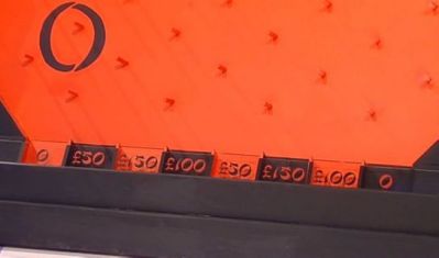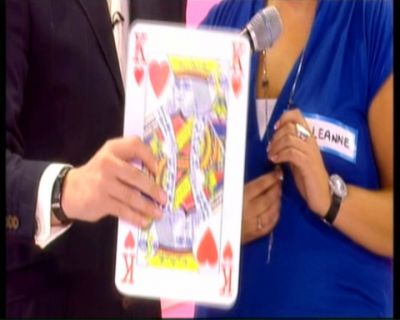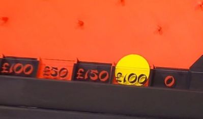 First try, just misses his eyebrow2nd toss is closer…just under his noseBANG!Winner on his third try!Plinko got a redesign! The small prize podiums also got a paint job.When one (or more) contestant gets 100, they play for a car. The 100 space is covered with this car graphic.This guy gives it a mighty spin! Unfortunately, he did not win a new FiatJoe hands over some One Pound coins. Must be time to play…Lucky 7! The rules haven’t changed from with the US show or Bruce’s show.Here are the 4 digits in the price stuck to the windscreen. He guesses 5 is the first digit.It’s actually 6! Pretty good guessHe looks pained (or relieved) as he hands £1 to Joe. His guess of 2 for the second digit was also off by 1.This guy is doing very well! He has missed each of the digits by only one! £3 gone with £1 to buy the car. He can miss it by 3 on either side. His final guess is 5Perfect! £1 to buy the car……which leaves him with £3 to buy petrol! Very very well played sir!And here’s a guy in the audience who is equally happy because now he can get a ride homeJOEker is the name of the game (I like that pun) and the rules are the same as the US.Play along! Is this appliance £79 or £99?Did you win a discard? The lady playing won all 4 discards.#5 hid a 4 and #4 hid a King.No! Wow, such bad luck. The only way to lose was for the joker to be in position #1 and it was.Joe consoles the young woman after her heart-breaking lossThis time, the game is 5 Price Tags. It plays the same as in the USThe first “small prize” is an ironHe correctly guessed that the price was trueNot so fortunate on this prize though, as designated by the X3 picks and the first choice wasn’t rightNeither was the 2nd pick. It all comes down to his final choice of £3,000He wins!Is that guy part Samoan?Half & Half by any other name is Money GameHere’s a cool shot of the game and video wallAnd another cool shot of the game and prizeHis first pick, 79, is neither the front nor the back half of the price of the motorcycleHis first pick, 79, is neither the front nor the back half of the price of the motorcycleIs 95 a winner?I think it might be!Sure is! Good playing, only making one mistake. Joe reveals the entire board. “There’s the proof” as Brucie would sayHere’s an interesting prize. It’s another bar but this one is shaped…..you guessed it, like the back of a car (or small cargo van I suppose). It may be bizarre but it’s more useful than a cotton candy machine!Another Bizarre Bar…this one shaped like a bottle!Safecrackers got a minor touch-up with a logo on thesafeThis lady picked up a £1,000 bonus from the big wheel *AND* she’ll spin again for a carOn Joe’s Price is Right, they call Card Game “Deck of Cards”. The rules are similar except there is no starting bidFrom the special deck, she drew a range of £700. Just like in the US, she can’t go over the price and must be within range to winA nice cut of an oversized deck of 52 cardsHere we see that she drew the 4 of Hearts which is worth £400Ooh! A big ‘ol King worth £1,000The video wall displays her total which is now up to £2,000. She opts to stopThe actual price is £4,300!Yeah. I guess she’s under!