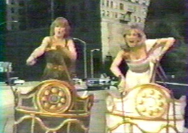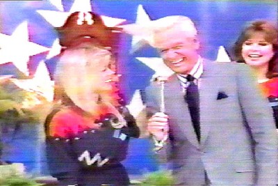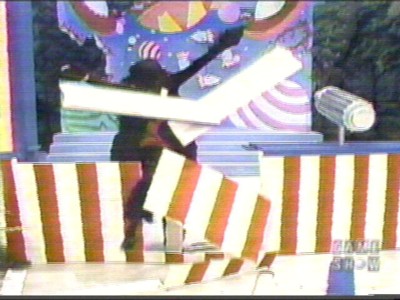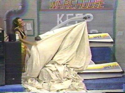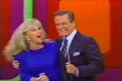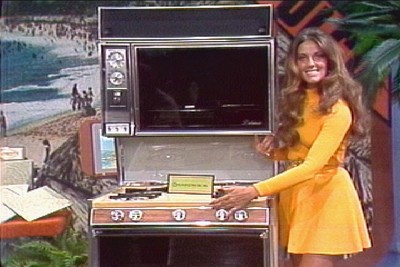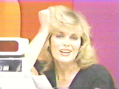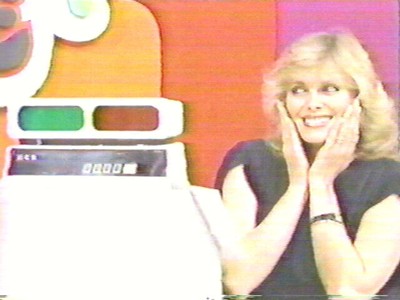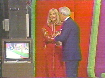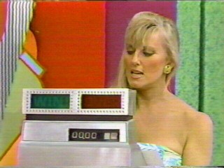 Model Holly Hallstrom became a fan favorite, in part, because of her charming misadventures onstage. She’s smiling for the camera, completely unaware that she was holding the sign upside down. In this particular case, it was explained that the small catch on the back of her blouse had broken just before the act began, and that stagehands had to duct tape the back of the blouse to her back to keep it on. Holly joked that she was just ‘confused’!Murphy’s Law really liked Holly. During this playing of ‘Most Expensive,’ she couldn’t blame her problem with the price sign on a missing button!The lovely Janice Pennington tells all during a Barker’s Beauties interview in the mid 80’s.Janice Pennington knows how to think on her feet. When a tennis ball machine failed during a one-bid, she didn’t get flustered…she just picked up the tennis balls from the bin and threw them herself. Barker complemented her on her ingenuity, then joked that the show had probably just lost a sponsor.Dian tells Bob during one of his many Barker’s Beauties interviews that she’s always asked what kind of person Bob is really like. He wanted to know how she responded. Her response, “Well, I’m no dummy!”Like hang-gliding? Then you’ll love Jan’s Happy Legs pants!Anitra Ford knows “You’ll love it at Levitz”! And we love us some loveseat!Isn’t that cute! A little combo Washer and Dryer for when you have only three shirts to do. Even as early as 1973, Janice had her style down.Holly explains what she’s looking for in a man during a Barker’s Beauty Interview.Kyle Aletter, daugher of Frank Aletter and Lee Meriwether, was a substitute Barker’s Beauty in the 1980’s. She would even participate in the Barker’s Beauties Interview when she was on the show.Anitra Ford, model from 1972-1977, was a one-woman Grocery Game on this 1976 episode. Here she is with Baskin Robbins ice cream……Jet Dry water spot preventer……and Smuckers Grape Jelly.Dian looks sharp in this scene from a 1976 show.Janice used to surprise Bob when she handed off the mike. This day she placed a pair of fake teeth in her mouth, but Bob decided everyone should be in on the joke.Very few game show models’ careers have spanned as many years as the career of Mary Poms. She started in 1967 on ABC’s “Temptation”, ended in 1985 on “Catch Phrase” (under real name Shana Forman), and in the middle was “The Wizard of Odds” (1974 with rookie American host Alex Trebek) and substitute duty on TPIR in the mid-70’s.A double delight for a ceiling fan presentation. The winning bidder also gets a caftan from Queen’s Way to Fashion. Or would you rather have a case of Clindo?Holly Hallstrom in her first year with the show, 1977.Taster’s Choice, the freeze dried coffee that looks, smells and tastes like fresh ground coffee.Another sword-and-silliness epic from the fevered brow of Jay Wolpert! It all paid off when he wrote “The Count of Monte Cristo” a few years back. Ben Her (Janice) challenges her archrival, Mazola (Holly), in a chariot race that has taken to the Los Angeles Freeway system.Did we mention Mazola was a cheater? She attempted to distract Ben Her by smacking a pie in her face.CBS had two Captains on its schedule in 1978: Captain Kangaroo, and Captain Jan, who would prance around the stage solving people’s problems and generally saving the day.Janice Pennington nearly throws her back out dancing like a native to introduce a trip to Tahiti. The director had fun with her performance, alternating between shots of her gyrating hips and the art cards that showed the hotel and countryside.From 1981: Ready? OK! It’s the famous Price Is Right Cheerleaders! “Okay, girls, let’s hear what you’re cheering for today!”This Showcase is brought to you by the letters “T”…The letters always spelled out the final prize offered. U, A, T…could it be a trip to Utah?…and “A”.The monster (Janice) goes berserk and lays waste to the carnival stand.Dian works the TPIR elevator in this long-running showcase.And every so often, Dian was needed in a bikini for a boat presentation so Ralph, the TPIR Robot, was ready to lend an electronic robotic hand.If there’s a clock in this shot, I sure haven’t noticed it.One of the show’s typically groovy jukebox presentations with Holly getting down.The best dancer on the entire TPIR staff was Janice. She had killer hip action and she knew it!Another good scout, the pigtailed Dian.She’s getting her next merit badge in retailing.Dian warns you not to touch her goodies unless you have money to pay for them.One last meal before the girls submit to the torture at Johnny’s Health Club.And I KNOW you all aren’t looking at the a spa!Slurp!Plasti-kote spray paint is fetchingly supported by Holly.It’s a trip to Tahiti! More importantly, it’s Janice!Yeah, why IS Holly ogling a six-foot party sub in a fez?Look who’s running the cash register today! Janice was out for this taping so Dian got the nod.She’s getting to be a pro at this cash register business!Dian would be the first to tell you it beats actually running a cash register for a living — but not by much.A popular series of showcases featured the girls in various work situations, describing the strange things that happen to them on the job. In this one, Holly was a park ranger.Holly on her favorite TPIR prize, the trampoline. She can’t do her usual stunts because she’s got the dress on.That explains a lot.But Venus girls rock!Big recovery. Jan was going to flip the price tag upside down.Be prepared for another Price Scout to take her rhyming oath.Watch out for the Prizebusters!And here’s Dian as a bank teller.She’s number one!Holly’s really going to catch it this time.Even Lee Meriwether’s kids like the great taste of Hershey’s Chocolate Syrup.The girls get ready to celebrate the 16th year in their kickin’ Jeran fashions.Vegas, baby! Holly does her best glam as a sexy showg
