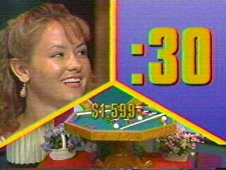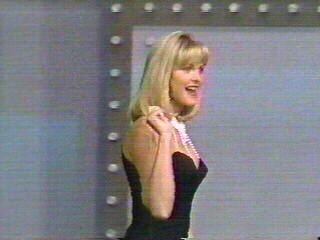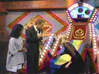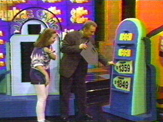 Doug Davidson and a contestant just before a game reveal.Burton Richardson busts out another “Come on down!”The big difference in Hole in One was that it was played using small merchandise prizes which had to be ordered from least to most expensive.The HI1 set as seen from the right-hand camera.Doug had his own style. Upset that the contestant missed, he leans on the set piece and doesn’t notice that it’s flipped over to the “OR TWO” side. Then he gives the player another try.Doug’s picture on the Hole In One ball.What’s different here? The price is being shown while the flag is still on the prize display. At one point a prize was picked, then revealed, and the flag was set on the putting green. The player picked again if the price was higher than the previous choice.The show’s fifth camera captured many great establish shots around the studio. Here’s the setup for One Away.The standard head-on shot of the 1A board.Any car games which were designed to be played on the turntable were staged like Lucky Seven, with the game board covered by a red tarp (not concealed behind a curtain) as Doug made his entrance.Down to the final selection in Any Number.And of course Lucky Seven continued to be staged in this fashion as well. A harp-like synth gliss accompanied the opening of the doors.A Lucky Seven question: what kind of car is it? Doug decides to ask model Ferrari Farris. Big mistake. “It’s a red car, Doug!”Whenever a certain game was to be played, its now-retired introductory prop stood at the ready at the rear of Studio 33, covered by another red tarp. The faithful knew what was in the offing.Plinko makes the move to nighttime.Here are the prize podiums. In this version, you earned chips by guessing whether the actual retail price was higher or lower than what was listed. Here, a contestant guessed wrong and did not earn a chip.Here, on the other hand, the contestant guesses correctly and earns a chip.The overhead camera during Plinko. Chip falls were accompanied by a special mix of one of Edd Kalehoff’s car themes for the show.Doug even got to use his Plinko stick during the show when chips got stuck. He thinks beating on the board will get it loose.Don’t forget that you need proper eye protection when you use the tanning bed.Doug pulls a severed hand out of the 3 Strikes bag.The first of the two methods wrong guesses were conveyed on 3 Strikes. A frame appeared around the number and “melted” away if the number was wrong. Later a “No” graphic similar to the one used on the daytime show was adopted.Just like on the mothership, players let themselves go when they won. Here one 3 Strikes winner does a cartwheel. This scene was later added to the show’s opening sequence.Make Your Mark is played for perhaps the only time. The name was changed using a non-light-up overlay covering the Barker’s Marker$ sign. (It’s this game that you have to thank because without it there wouldn’t even be a TNPIR Gallery here)Doug kicks off the game by giving this contestant $100 which she can use to move the marker. Hmm, $100?“Doug, you’re supposed to give the player $500!” as Phil Rossi makes a rare on-stage appearance to rein in his frugal host. Darn, nearly made $400 on the deal!The old-style price displays,cut down to size when the prizes were put on their risers. This was necessary because the signs sometimes were between prizes, causing confusion.Can you tell what today’s first game is going to be?On this version Golden Road always used a small prize to set up the first two numbers, such as this fanny pack.A shot of the big doors just before the reveal. Doesn’t the Golden Road look great against the black stage floor?Grand game was still played for $10000, but like the Golf Game it featured small prizes as well.Could it be OLD EL CHEAPO PM? Relax, it wasn’t this time.A player gets set to run around in circles for 45 seconds on the Race Game.Model Lisa Stahl. After “The New Price Is Right” ended she got married, and had recurring roles on “Baywatch” and its short-lived spinoff, “Baywatch Nights”, as psychic Destiny. But her biggest fame came when she teamed up with Michael Young (from the old “Kids are People Too” to host Florida’s lottery game show, “Florida Flamingo Fortunes”, which borrowed some of the unused music Edd Kalehoff wrote for TNPIR.Lisa tells Doug he has a phone call from Captain Kirk!Lisa is angry with neighbor Ferrari, who has so many wonderful things in her backyard that she doesn’t. Maybe that should be green smoke?Julie Lynn Cialini, one of the models on the series, was Miss February 1994 in Playboy magazine. Shortly after the series premiered she was featured again in the magazine to celebrate her job on TPIR, just as Dian Parkinson was featured years ago. Also, Julie was named Playmate of the Year.One of Lisa’s standard jobs on TNPIR was to open the Safe Crackers safe. She always gave us one of those sweet little “follow me” moves when she crossed to the safe.For some reason the safe only contained the grand prize, with the three-digit prize (the combination) outside just left of Door #2.Shell Game was wheeled out by an available model after the Door #2 reveal. The model remained with the bonus prize and the doors stayed open throughout the duration of the game.Harder to tell which shell has the ball when Andy chooses an overhead shot. The table almost disappears into the black floor tile.Magic #, A contestant has his hand on the leever that controls the geezmo.The repurposed Double Prices prop which concealed the prices of the two items in Magic #, with the top one the higher priced item.Squeeze Play was played in one of two positions on stage: between Doors 1 and 2……and in front of the Video Wall.Julie has such a supple wrist! How do you think she does it? I don’t know!A unique way to play Switch? with two trips, each in their own door.Doug “X”es another contestant.When you watch every d