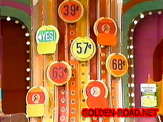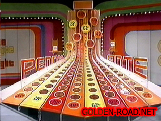 Instead of the contestant having gigantic, fake pennies, real pennies shot down the board into catchers at the front whenever a wrong guess was made; a Sportstype-font scoreboard at the top of the prop kept track of how many pennies had been accumulated.