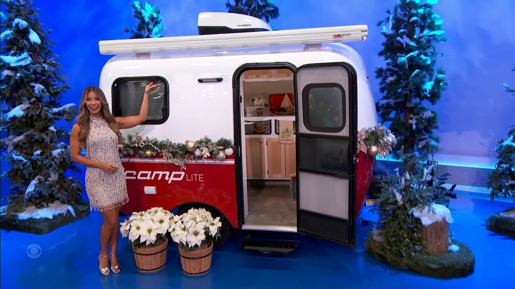 No money or camping trailer tonight, unfortunately. Thankfully, she is still filled with Christmas cheer.