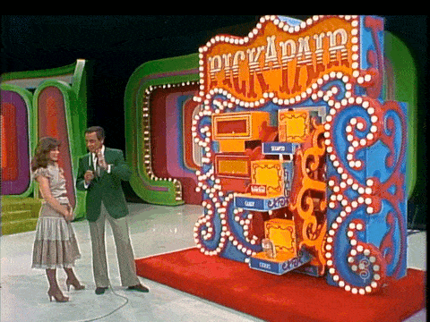 Pick a Pair is simple, quick, and has been frequently played on The Price is Right ever since it was introduced. It’s had two very different sets over the decades, with the first being themed around a giant spinning Ferris Wheel!