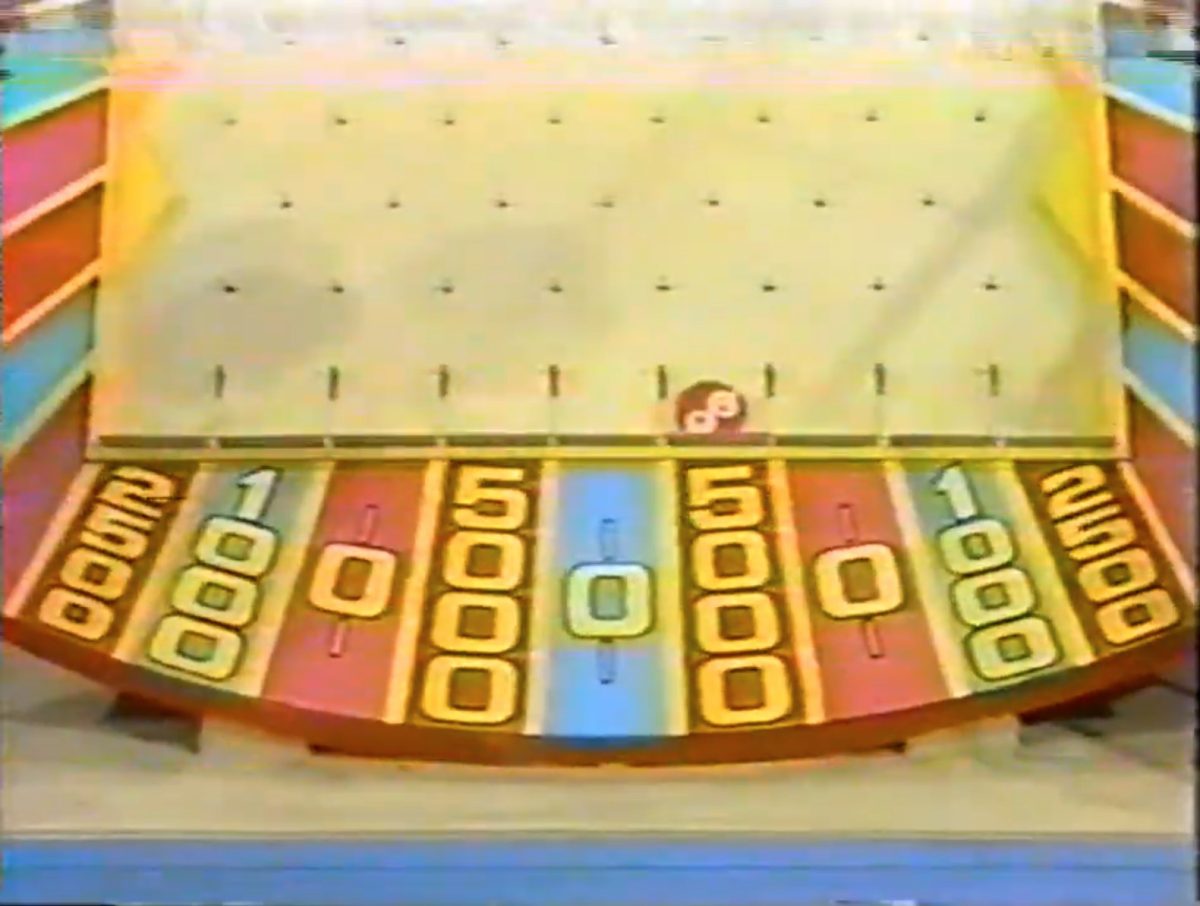 The Davidson version also experimented with different Plinko layouts, including one with a $0 slot in the middle! But this version was short-lived, and when it went off the air, the unique $2,500 slots on the side went with it.